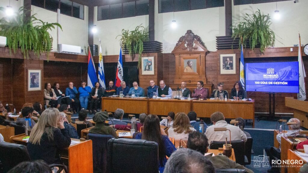 El intendente, Arq. Guillermo Levratto, acompañado por su equipo de gestión, concurrió ante la Junta Departamental de Río Negro para presentar el informe correspondiente a los primeros 100 días de gobierno.