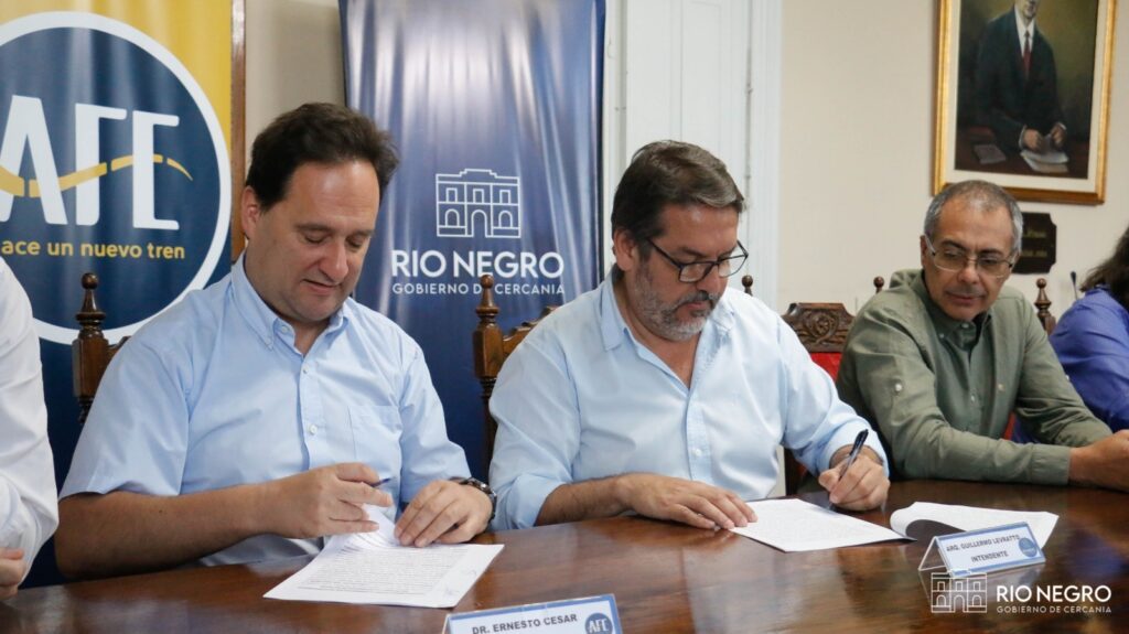 La Intendencia de Río Negro y la Administración de Ferrocarriles del Estado (AFE) firmaron un convenio marco de cooperación con el objetivo de fortalecer el trabajo conjunto, compartir programas y avanzar en una mirada estratégica sobre el desarrollo ferroviario y la puesta en valor de la infraestructura existente en el departamento.