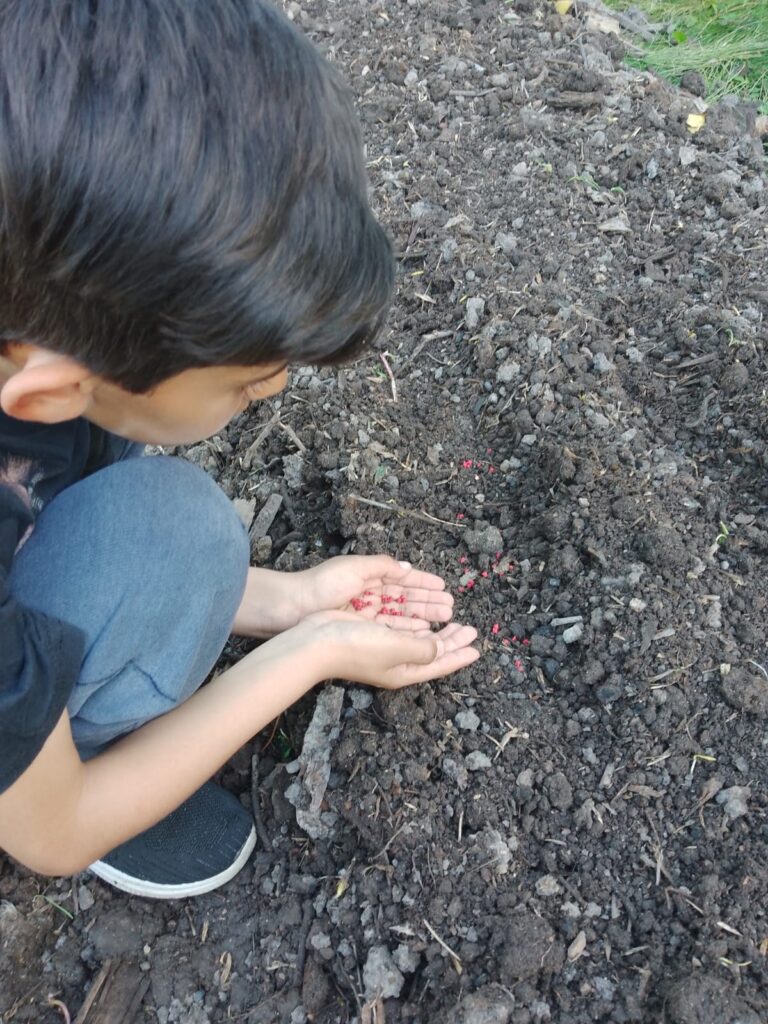 Tiene un muy buen interés en lo que es plantar y con esto logramos inculcar a él desde temprana edad el valor de la tierra, plantar y obtener los alimentos más sanos y saludable al alcance de sus manos.